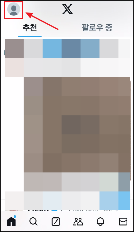 ① 트위터에 로그인 후 상단 좌측 자신의 프로필을 클릭하세요!